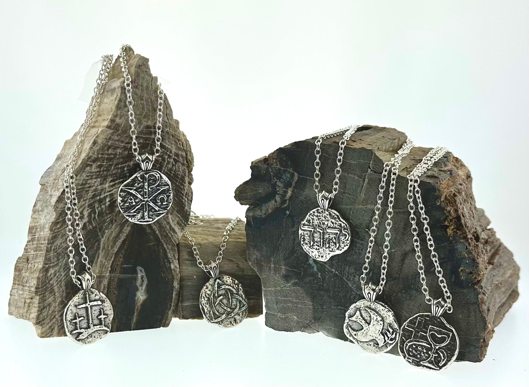 Ancient looking coins with Historic Symbols of the Christian Faith